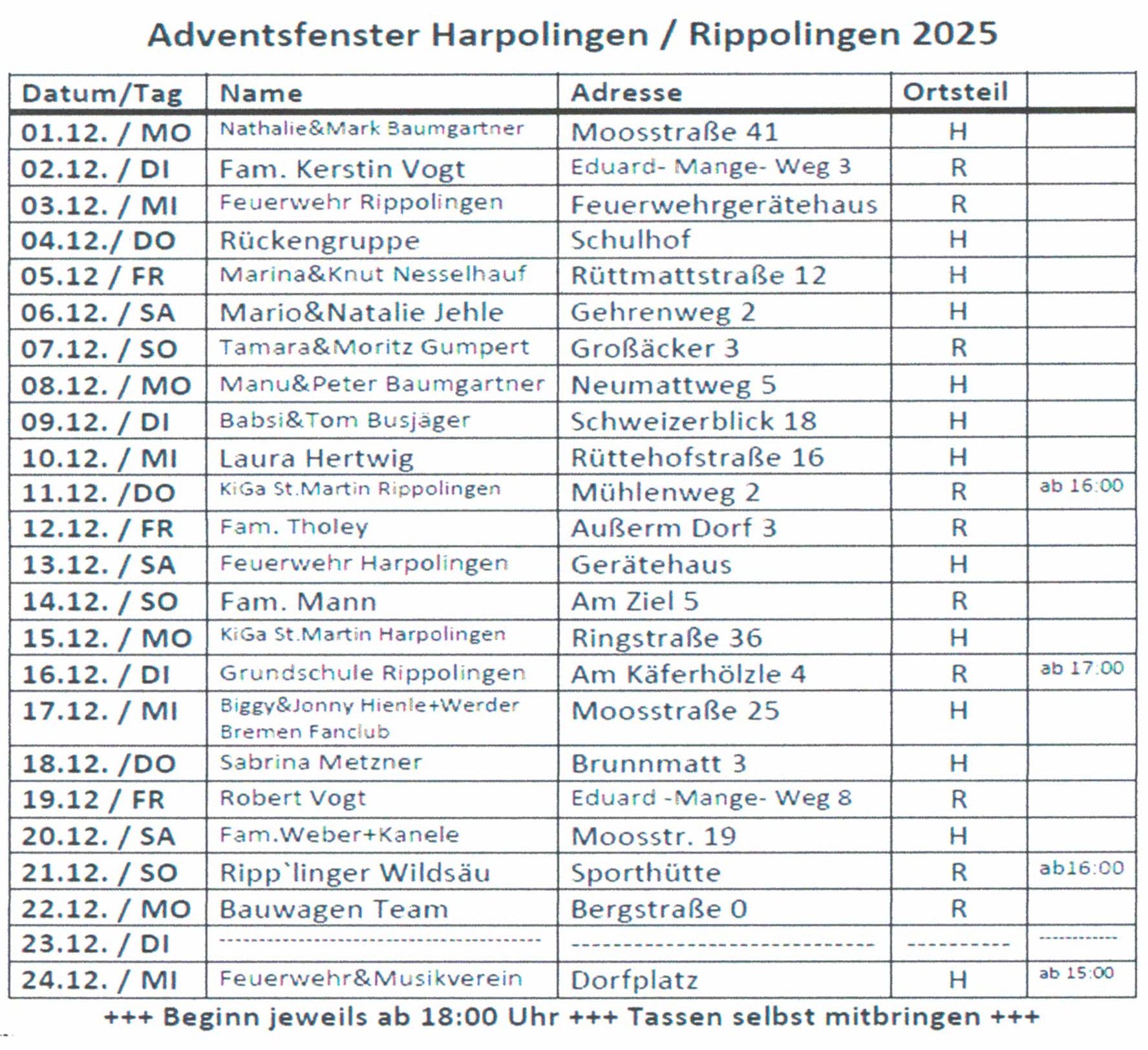 Auch unsere Vorstände und Fachvorstände sind ja überwiegend Rentner, weswegen wir aktuell im Dorf nicht mehr so präsent sein können, wie gewohnt.