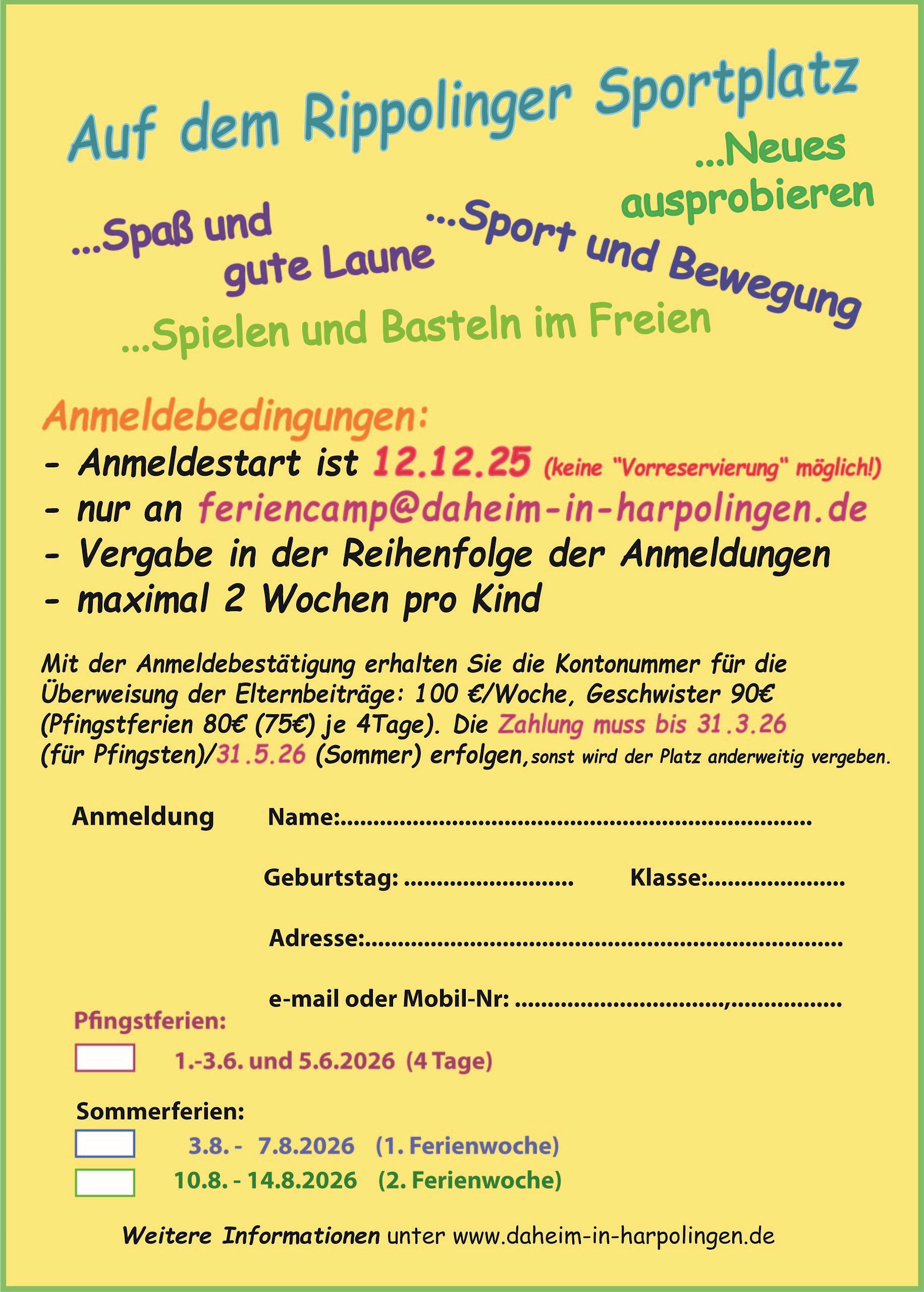 Anmeldestart ist der 12.12.2025. Die Plätze werden in der Reihenfolge der Anmeldungen vergeben.