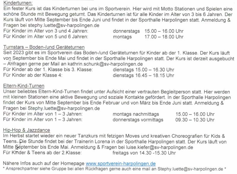 Der Harpolinger Sportverein hat folgende Angebote für Kinder: