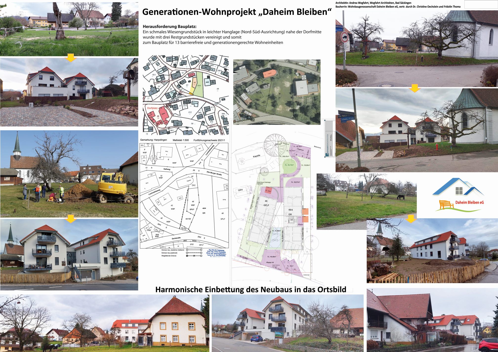 Ende 2021 erhielten wir die Baugenehmigung für unser Generationen - Wohnprojekt und im Januar 2022 erfolgte dann der erste Spatenstich. Fotos von jedem Bautag finden Sie hier vom 1. Baujahr und hier von der Fertigstellung im 2. Baujahr